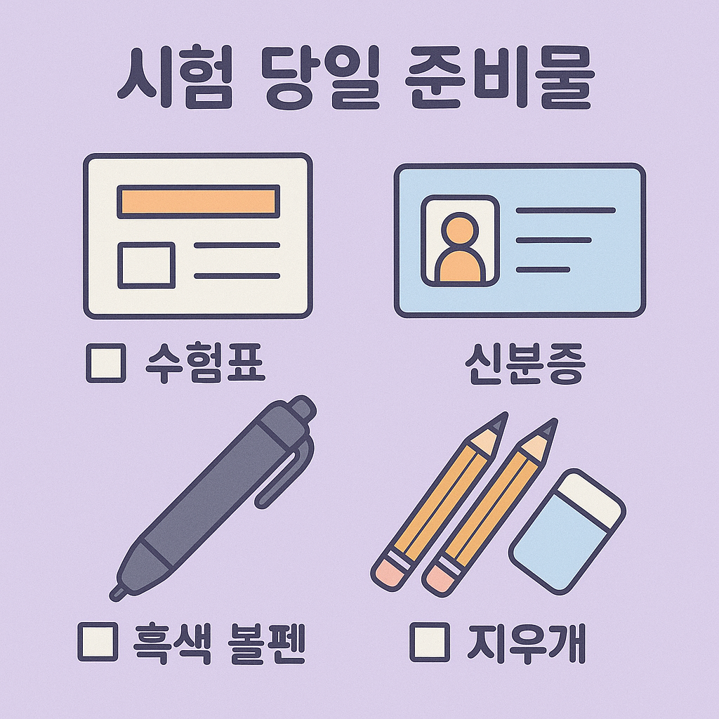 • ✅ 수험표, 신분증, 필기구(컴퓨터용 사인펜, 연필, 지우개) 준비 완료